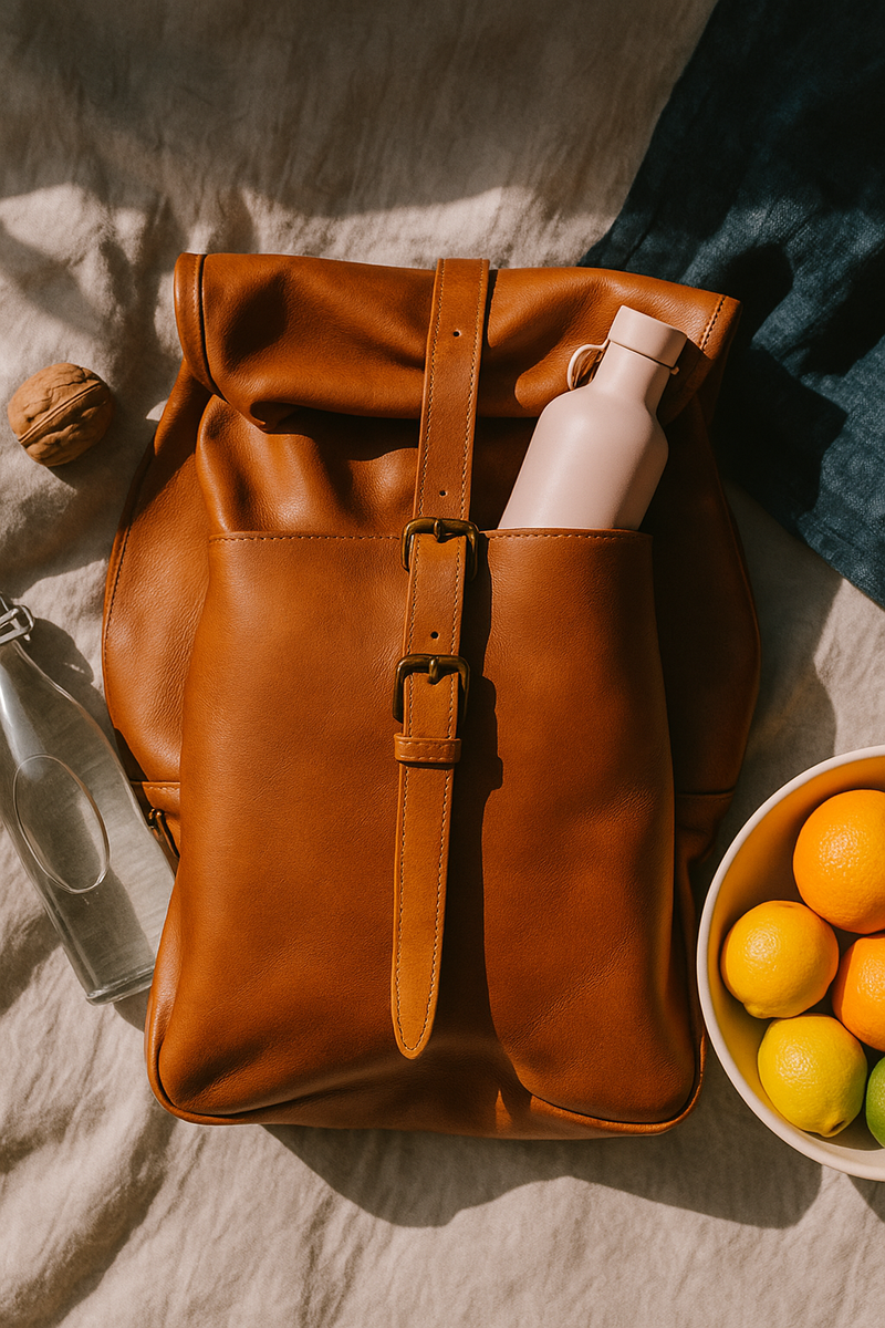 Roll-Top Goat Leather Backpack